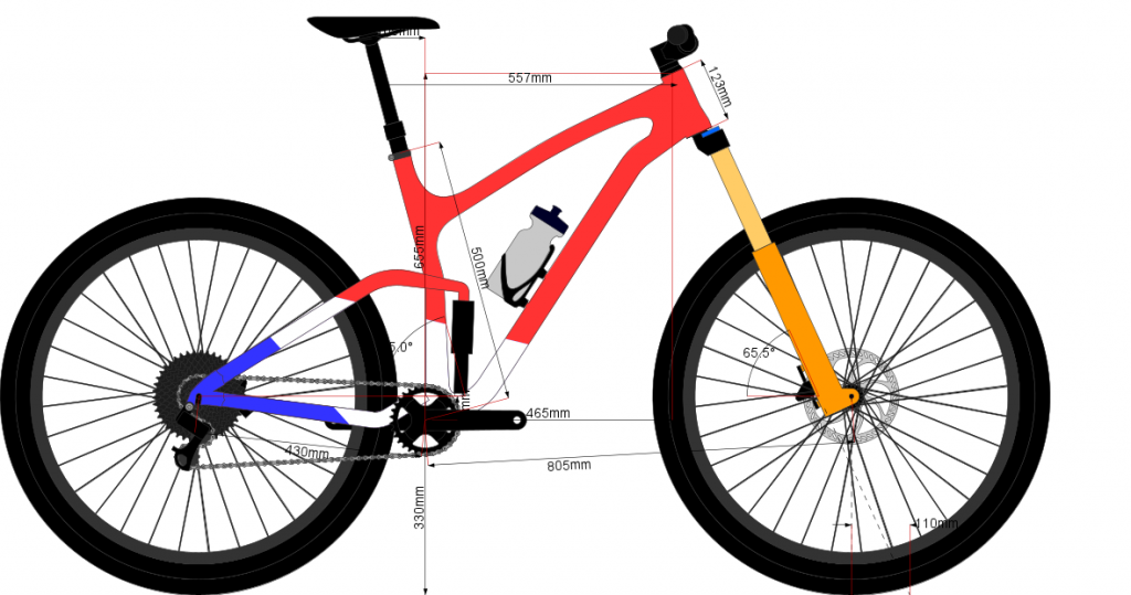 There is currently no formal option to add a rear shock in BikeCAD. However, I see that you've recently created the following model which includes a representation of a shock.