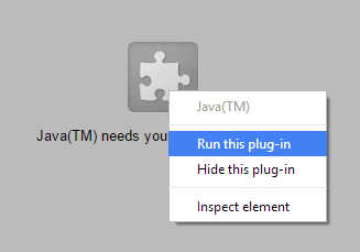 Many people seem to see this and not know how to get past it. The trick is to right click and choose Run this plug-in as shown below.