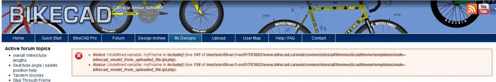 I've now managed to upload teh file by using the save online option to here: http://bikecad.ca/1396062508667