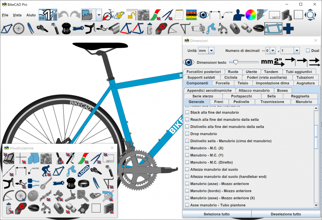 Come puoi vedere dalla schermata qui sotto, BikeCAD Pro è parzialmente tradotto in italiano. BikeCAD Pro viene fornito con tutte le traduzioni integrate.