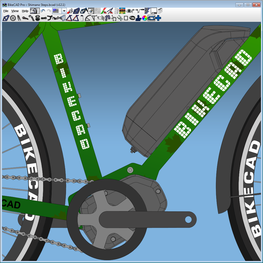 Below is a screen capture from the as yet unreleased BikeCAD version 12.1. BikeCAD version 12.1 will feature the option to model the Shimano Steps electric power system.